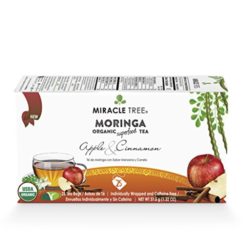 Enjoy a box of 25 tea bags made with USDA organic moringa (dried) leaves with apple and cinnamon flavors! Moringa leaves contain over 90 nutrients – including 47 Antioxidants,